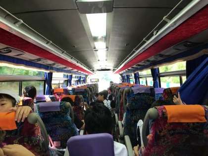 高速道路に入り,バスレクが始まりました。クイズに歌,みんな楽しそうです。