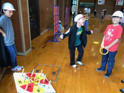 みさきの家2日目〜インドア活動1〜 公開日 2019/07/09 更新日 2019/07/09 4年生 午前中の後半はプレイホールでいろいろな運動を楽しみました。 輪投げも楽しそうです。フリスビーのストラックアウトは、大きな的なのになかなか抜けません。!