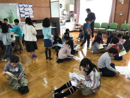 2年 ブックトーク 公開日 2020/02/21 更新日 2020/02/21 2年生 醍醐中央図書館よりゲストティーチャーをお招きし,ブックトークをしていただきました。 ブックトークでは「いもころがし」や「食べられたやまんば(三枚のお札)」を紙芝居で読んでもらいました。また,図書館から持って来てもらった日本や外国に伝わる『昔話』の本を読み進め,本や昔話に興味・関心を深めました。