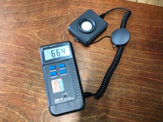 みなさんが使う教室の明るさが十分かどうか,機械(照度計)を使って,見てくださっています。明るさを測定する機械ってどんな機械でしょうか。ぜひ写真でチェックしてみてください。