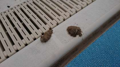 最近,プールのサイドに土のかたまりみたいな物がいくつも落ちていて,