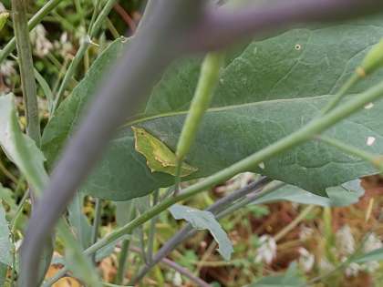 モンシロチョウのよう虫です。さなぎになっているものも見つけました。