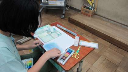 月曜日,火曜日には,図画工作科で今の心のもようを描きました。様々な色の絵の具を混ぜてみたり,水を多くしたり少なくしたり…自分の思いのままに描くのが,とても楽しそうでした。