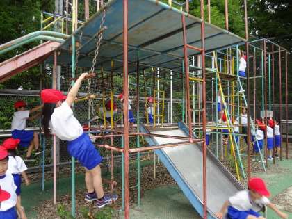 体育科の「ゆうぐであそぼう」で,総合遊具やのぼり棒での遊び方について学習しました。楽しく,安全に遊ぶことができました。のぼり棒にもどんどん挑戦していました。