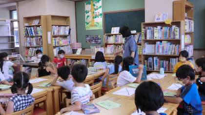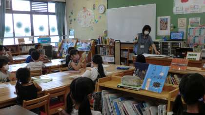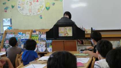 学校図書館司書の先生に図書館の利用についてお話をしていただきました。本の分類のこと,貸出・返却のルール,そして今日は七夕ということで,七夕にちなんだ紙芝居を読み聞かせていただきました。午後のひととき,お話の世界に入り込んでいる人もたくさんいました。週末には読書を宿題にしています。本から学ぶこともたくさんありそうです。読書を習慣づけられるといいですね。