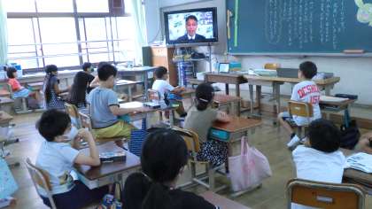 休みの間,ほとんどの人が学校に来ることがなかったので友だちに久しぶりに会えてとっても嬉しそうでした。終業式と同様,ZOOMでの始業式でしたが,みんな校長先生のお話をしっかりと聞くことができました。