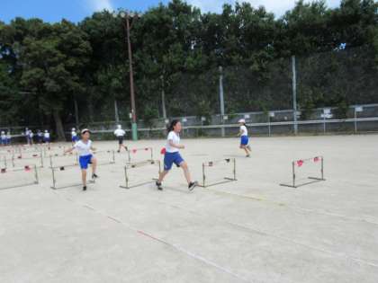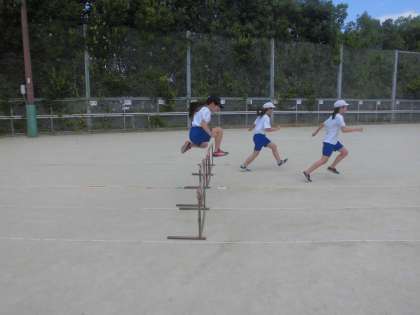 スポーツDAYに向けて,体育の学習を進めています。ハードル走では,自分のインターバルをつかんだり,跳ぶタイミングを思い出したりするのに苦しむ様子もありましたが,元気よく跳び,記録を伸ばしています。まだまだ昼間は暑いですが,がんばります。