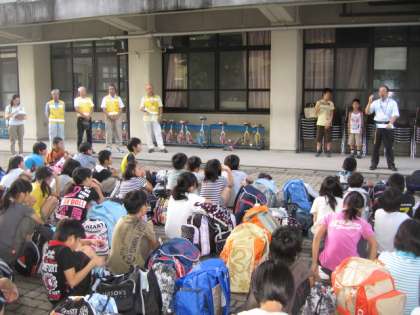 長期宿泊学習に向けて,5年生が元気に出発しました。5人のボランティアの方々にお世話になりながら,4泊5日を過ごします。どんなことが待ち受けているのか,どきどきわくわくです。