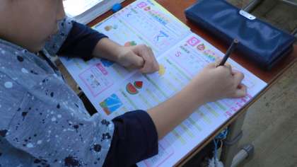 国語でローマ字を学習しています。パソコンやスマートフォンなどの普及に伴い,子どもたちの中にもローマ字を身近に感じている人も多いですが,ローマ字表記ならではの決まり事もあり,正しく表記するためにテキストで練習しながら進めています。