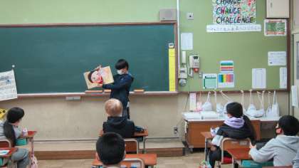 5,6年生の図書委員が,朝読書の時間に各クラスに行って読み聞かせをしてくれました。