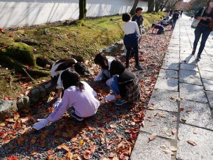今日は醍醐寺さんの落ち葉拾いをしに行きました。