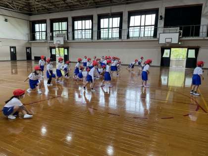 今日は2度目の体育の学習をしました。まねっこウォーキングやだるまさんんがころんだをして,体を動かしました。たくさんの動きを楽しむことができました。