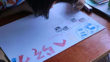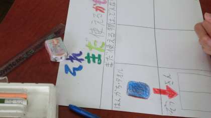 くらしとごみの学習ではごみの処理の仕方を予想し,確かめた後に処理するにもたくさんの費用がかかっていることを知り,わたしたちはごみを出すときにどのようなことに注意したらよいのか,「私たちの環境」を読んで考えました。3Rを知り,特に「リデュース」は自分たちにもたくさんできることがあることを知りました。学習のまとめとして,「ごみを減らす」呼びかけをするポスター制作に取り組んでいます。