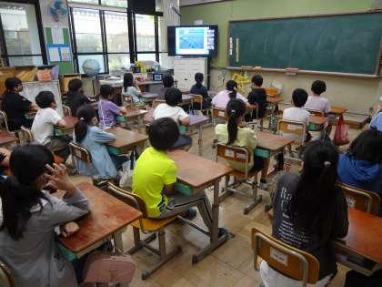 1日(火)に朝会があり,9年間続いている京の杜プロジェクトのお話がありました。東日本大震災後の復興を願って毎年続けていることや醍醐寺のクローン桜について,真剣な表情で聞いていました。