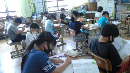 夏休み直前まで,小数の学習を頑張っています。小数の仕組みや,10倍・100倍などでは苦戦していた人も,「位をそろえる」「小数点をそろえる」ことに気をつけて計算する筆算ではスラスラと問題を解いていました。