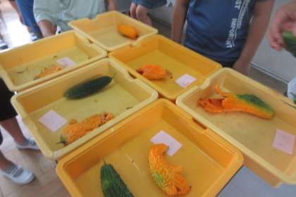 [4年] ゴーヤを収穫しました! 公開日 2021/08/26 更新日 2021/08/26 学校の様子 夏休み中にゴーヤが大きく育ちました。 はしごを使ってゴーヤを収穫しました。 収穫したゴーヤを見て「なにこれ!」と子どもたちも驚いた表情でした。