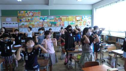 GIGA端末を長い時間見ていると,目がちかちかしたり,体がだるくなってしまうことがあります。そんなときには「姿勢体操」。