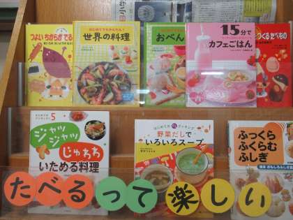 また,本館1階の「ほっこり図書コーナー」には,食べる楽しさをテーマにした本を学校司書さんが紹介しています。
