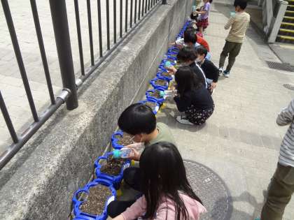 1ねん あさがおのたねを植えました。 公開日 2022/05/10 更新日 2022/05/10 学校の様子 生活の学習で,あさがおのたねを観察した後,植木鉢に植えました。「おおきくなあれ。おおきくなあれ。」と願いをこめながら水やりもしていました。