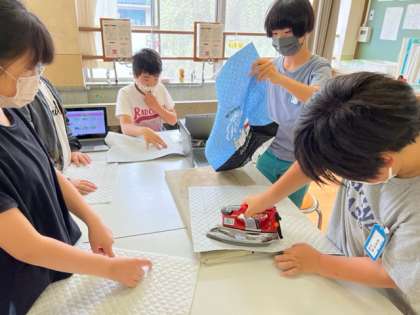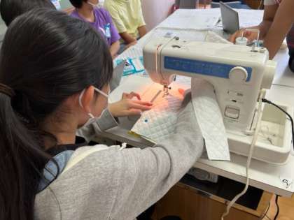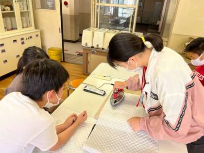 アイロンで自分の名前を付けるところからスタートです!ミシンも上手に使えるでしょうか!