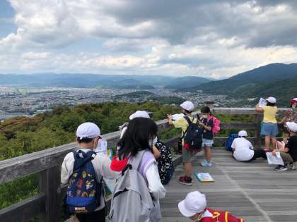 将軍塚では京都市を一望できる展望台から,平安神宮や鴨川,京都御所などを見つけました。