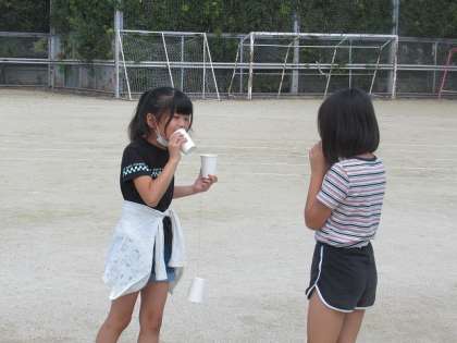 子どもたちは、体験を通して、音が伝わるときの物の震え方について気づきを深めていました。