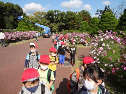 【1年】校外学習 公開日 2022/11/09 更新日 2022/11/09 学校の様子 先週の金曜日、1・2年生で京都府立植物園に電車に乗って行ってきました。 植物園内には、こすもすをはじめ、秋の植物がたくさんあり、子どもたちも 「いろんな色があってきれいだね。」 「チョコレートのカカオの木がある!」 「お外で食べるお弁当はおいしいな!」など、 わくわくするような体験がたくさんできたようです。