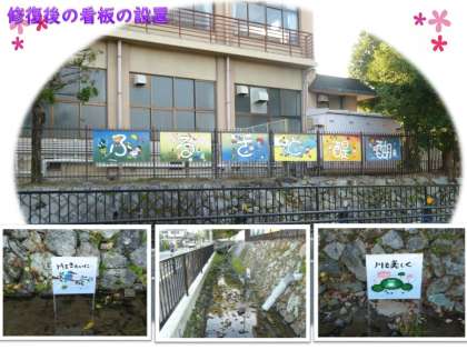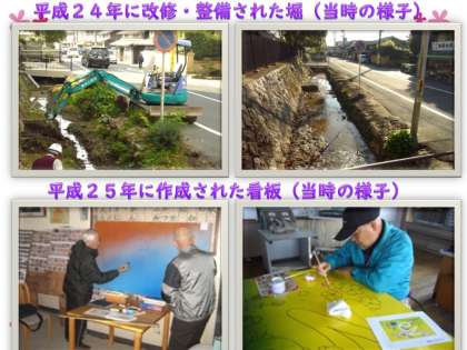 醍醐小学校前の堀の看板は、平成25年に作成された自慢の看板です。