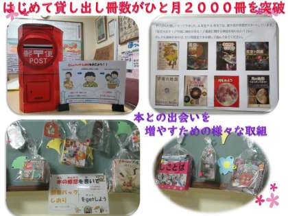 その結果、ひと月の貸出累計冊数が、はじめて2000冊を超えました。