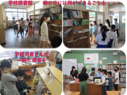 校長先生による朝会でのよびかけからはじまり、図書主任や学校司書さんが中心になって、子どもたちと本との出会いの場を増やそうと様々な取組を行いました。