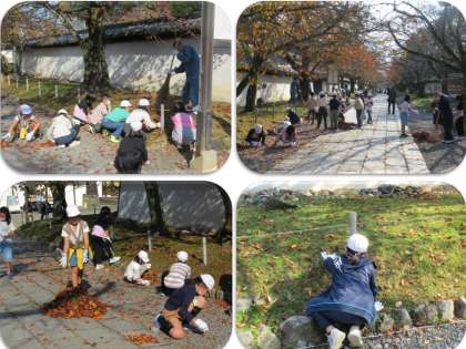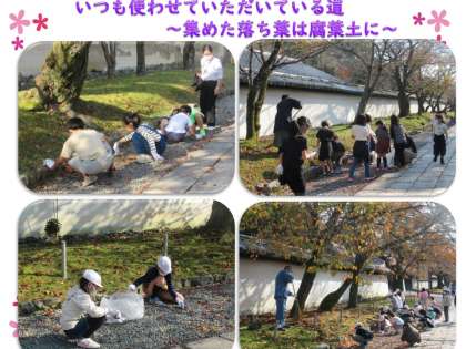 今日は醍醐寺の参道で落ち葉拾いをしました。