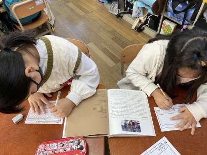子どもたちは、「食べ物」「遊び」「学校の様子」「子どもの一日」など様々な課題を設定していました。