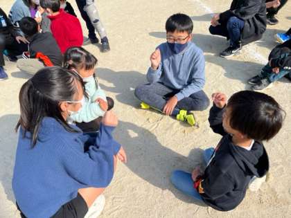 【6年】 みんなで楽しく過ごすために 1年生との遊び 公開日 2022/11/17 更新日 2022/11/17 学校の様子 みんなで楽しく過ごすために…1年生と楽しく遊び、仲良くなることを目的に遊びの内容を考え、いよいよ当日になりました。 ペアを作ったり、協力する内容にしたりと試行錯誤した遊びは、うまくいったでしょうか。