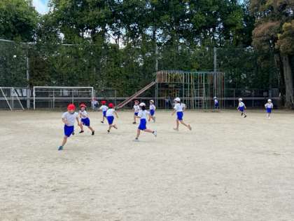 中庭や運動場の使い方を確認して,余った時間にはおにごっこもしました♪体操服にも上手に着替えられました!