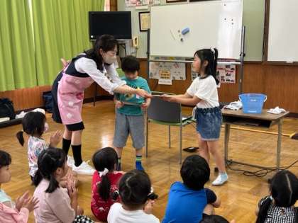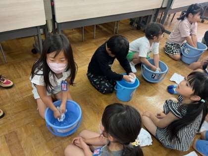 ぞうきんの絞り方を実際に挑戦!