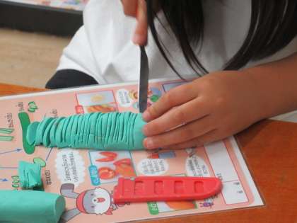 家庭科では、野菜サラダをつくるための調理計画を立てています。