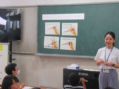 【2年】食の指導「お箸の持ち方」