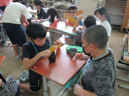 子どもたちは、これから育てていく種の様子を観察して、感じたことを記録していました。