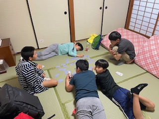 朝早くから起きているグループもありましたが、部屋の中で工夫して過ごしていました。