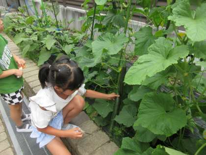 お世話も頑張っているので大きなキュウリができていて、子どもたちも