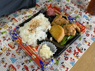 外で食べる予定でしたが、たくさん歩いて暑かったので、プレイホールでエアコンをつけて食べました。
