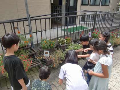 理科の「動物のすみか」の学習で、どんなところに、どんな生き物が、どんな様子でいるかを観察しに行きました。