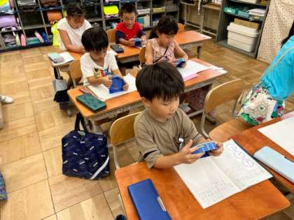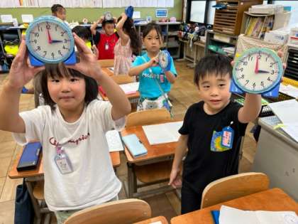 時計の学習に入りました。今日は長い針が12のときの読み方を知りました。時計を合わせる練習もしてばっちりです☆