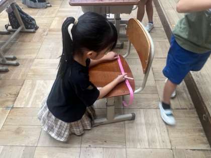「こんな風に比べる方法もあるんだ!」と新しい方法にわくわくしながら,いろいろなものの長さを調べていました。