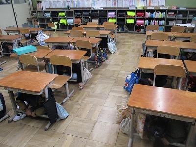訓練では、学習したことを真剣な表情で取り組み、運動場に避難する姿がとても素晴らしかったです。