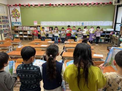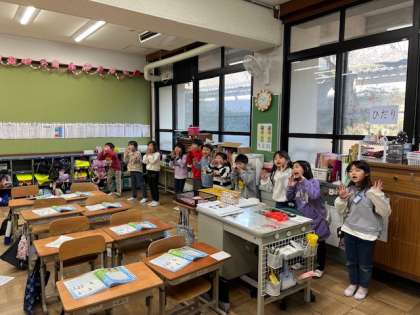 1年2組オリジナルの歌詞を考え、動きもつけながらまねっこし合いました♪