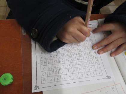 表に1から順番に100までの数を数字で書きました。