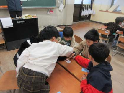 色の英単語をしっかりと聞き取り、白熱したカルタ遊びでした。