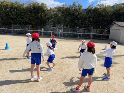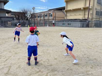 パスやキャッチの練習をグループでしました。上手に投げるために・受けるために気をつけながら進めていく姿が見られました。