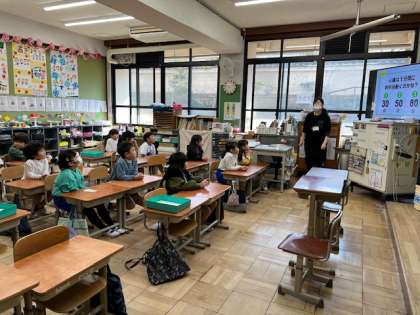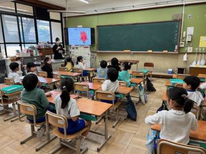 まずは、高橋先生から「生きていること」について、心臓のお話をしていただき、保健室に移動しました。